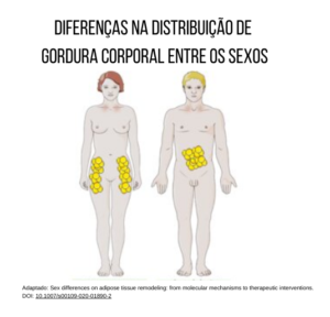 As mulheres possuem maior acúmulo de gordura corporal do que os homens, com predominância de gordura subcutânea, especialmente na região glúteo-femoral. Essa distribuição ajuda no armazenamento de energia e pode melhorar o metabolismo da glicose, oferecendo uma proteção contra o diabetes tipo 2 na pré-menopausa. Já os homens costumam acumular gordura visceral na região abdominal, o que aumenta o risco de doenças metabólicas.