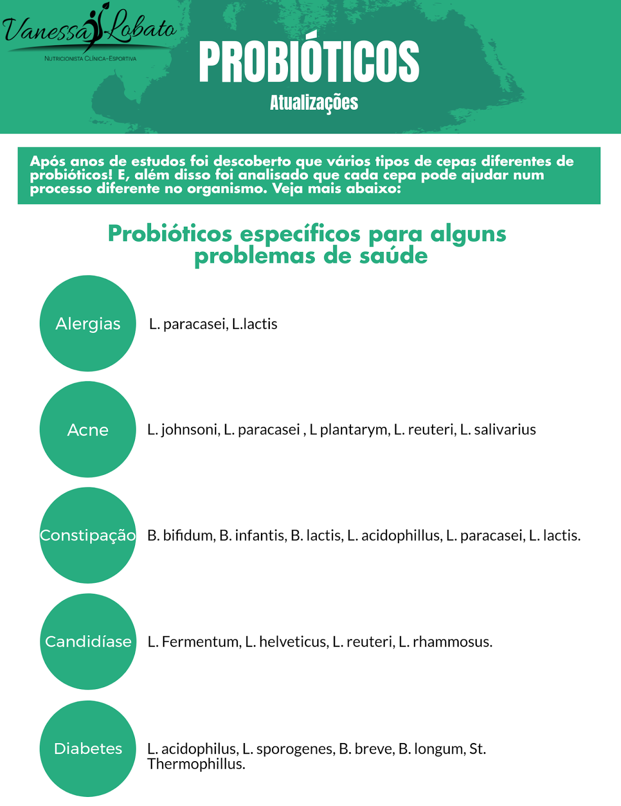 - Informações sobre probióticos: https://nutrivanessalobato.com.br/probioticos/